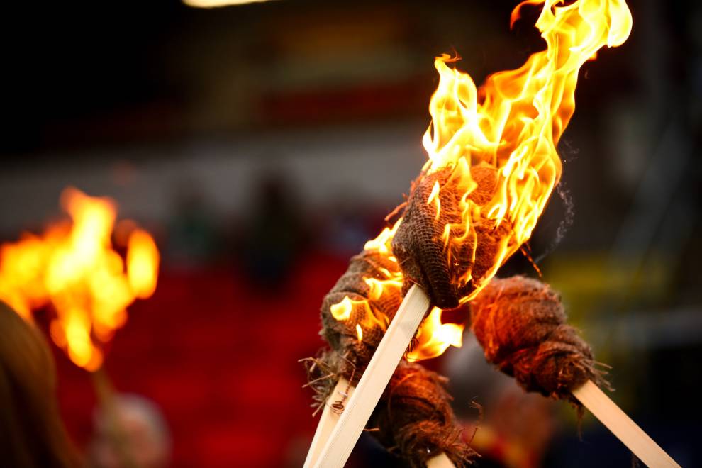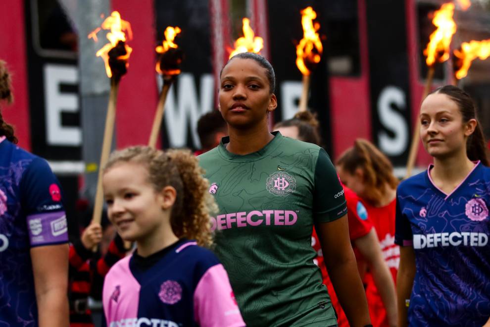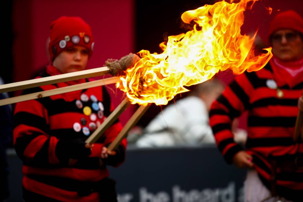 A bonfire night atmosphere was created as the teams came on to the pitch flanked by members of the Lewes Bonfire Society who held flaming torches to the back drop of firecrackers and smoke.
